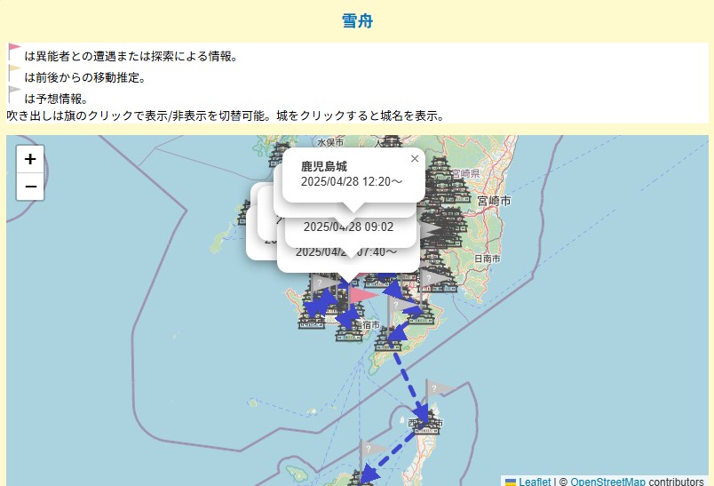 明日から城攻めのため、しばらく異能者地図の更新が止まります。あらかじめご了承ください。